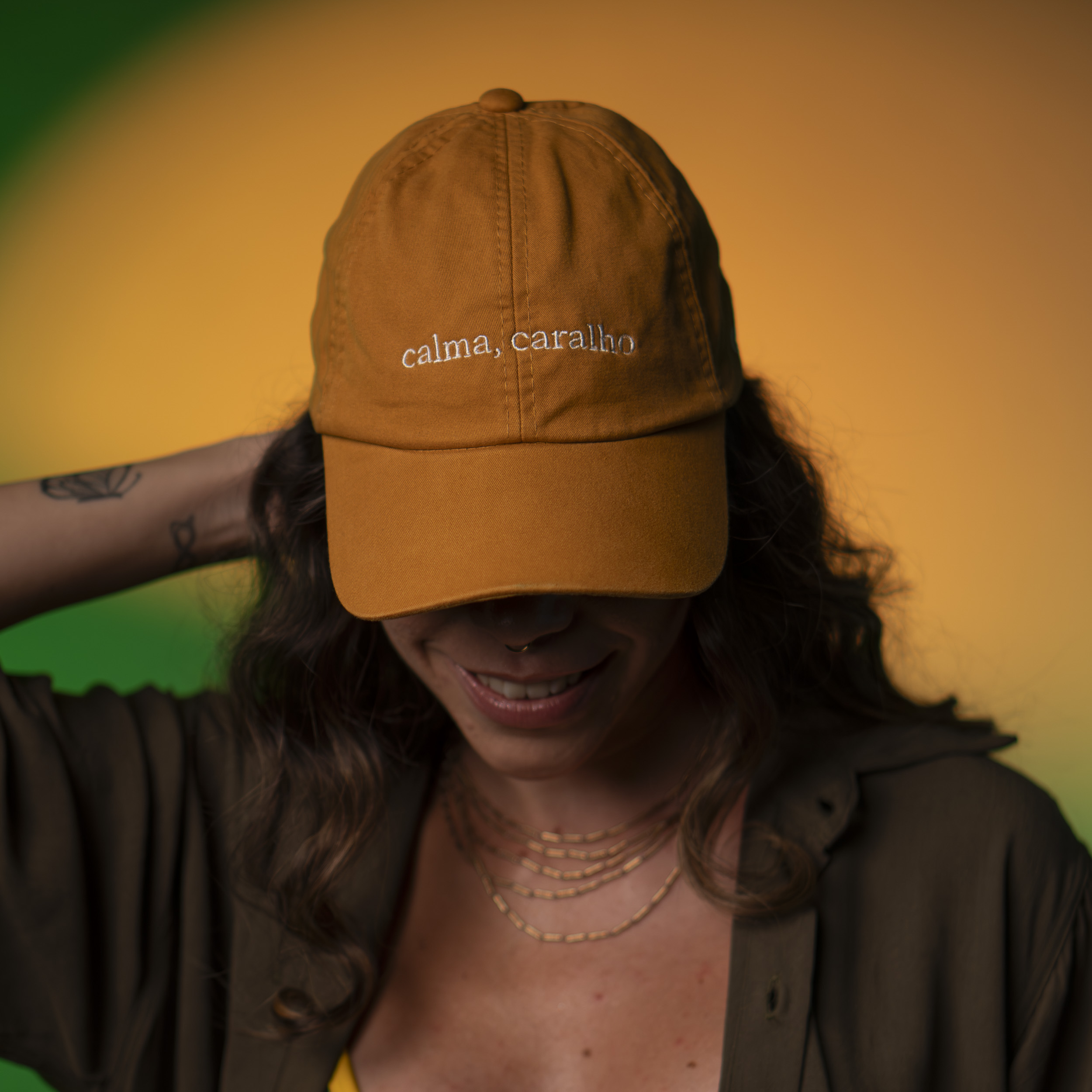 Boné 100% algodão mostarda com regulagem.