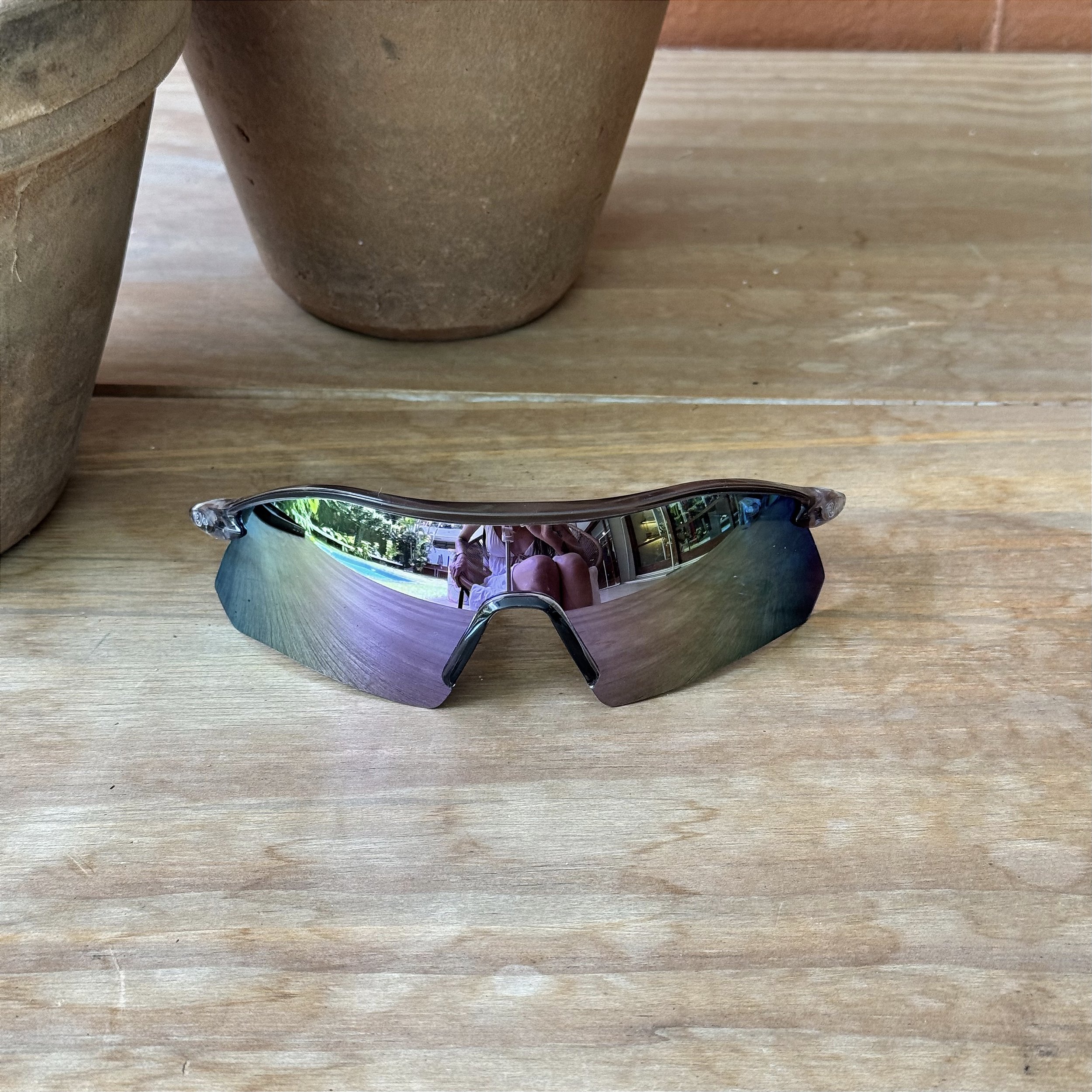 Óculos de sol com estrutura em acetato italiano cinza transparente e lentes furtacor polarizadas UV400.