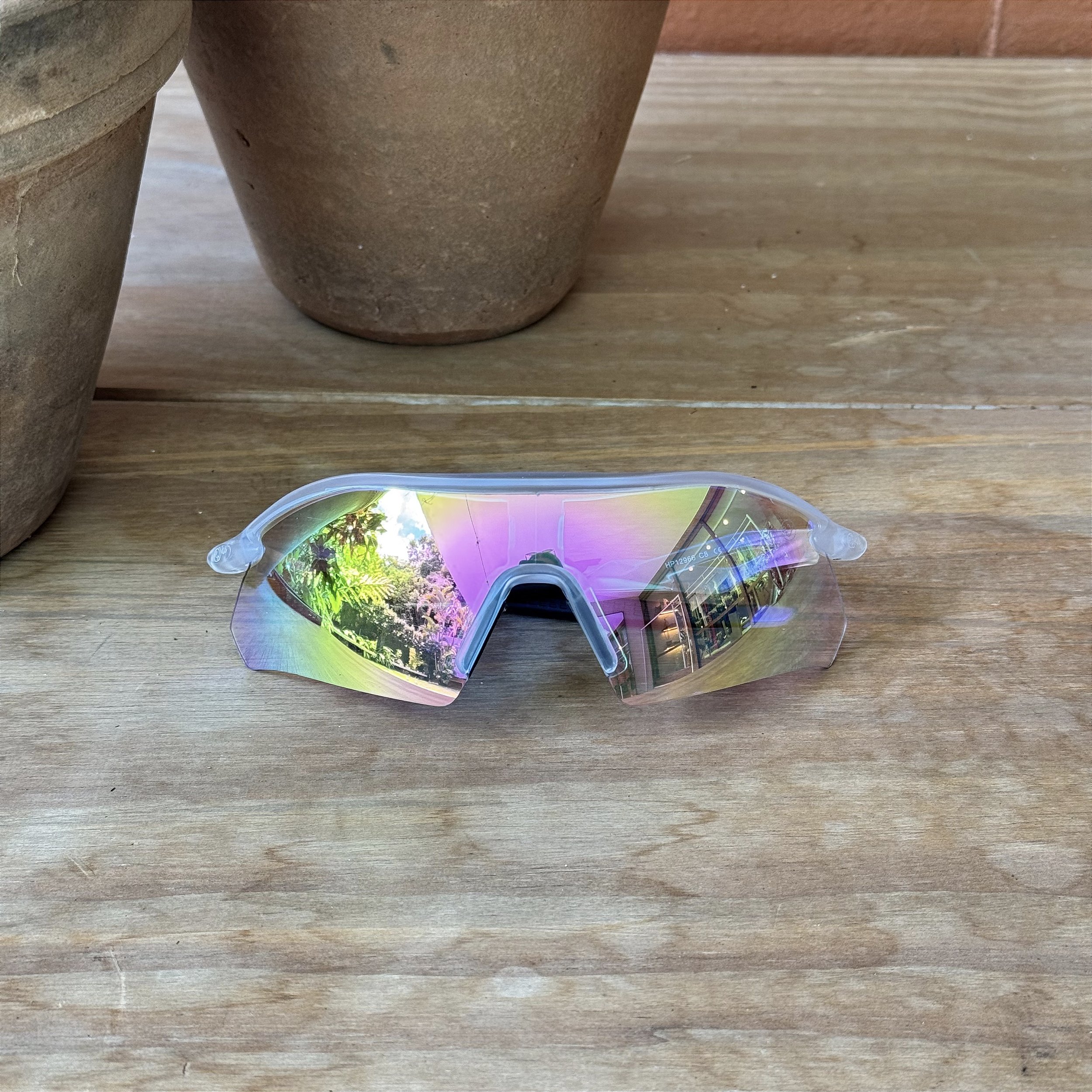 Óculos de sol com estrutura em acetato italiano transparente e lentes furtacor  polarizadas UV400.