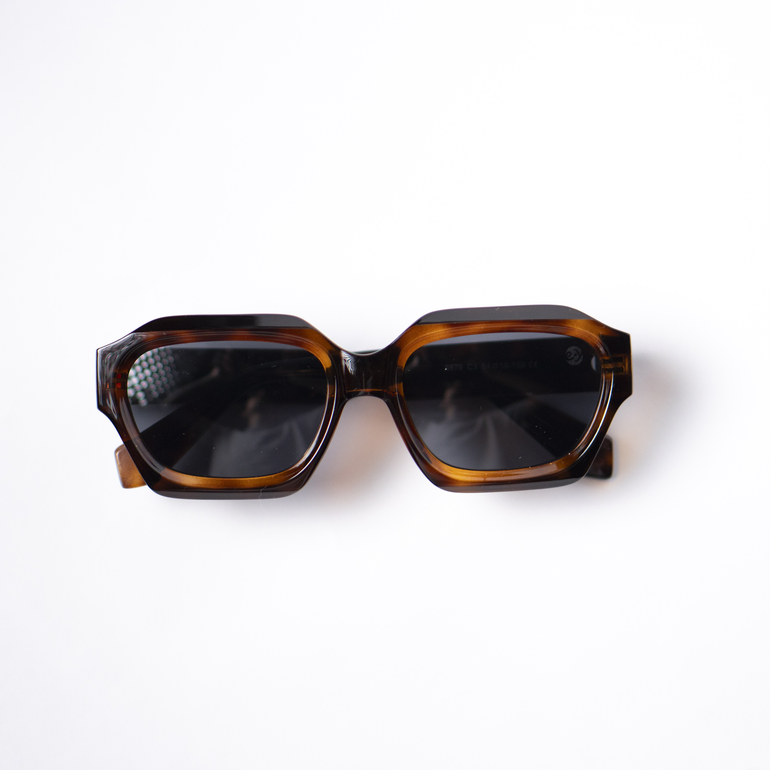 Óculos de sol com estrutura em acetato italiano tartaruga e lentes marrons com proteção UV400.